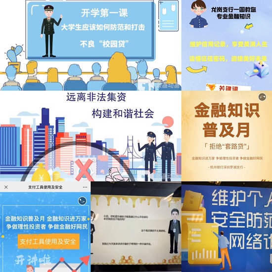 活动期间,杭州银行深圳分行多家网点自制了微视频开展线上宣传活动,以“2021年金融知识普及月 金融知识进万家 争做理性投资者 争做金融好网民金融宣传教育活动”为主题制做小视频通过微信平台进行全面宣传,形式为H5、小视频、长图围绕防范非法集资及防范电信网络诈骗、防范校园贷、拒绝套路贷、个人征信知识及支付工具使用与安全等主题的卡通教学,以案说法的形势向金融消费者宣讲如何保护自身权益,做理性的投资者。生动有趣的情景剧不仅向金融消费者宣传了金融知识还提升宣传教育活动的吸引力。